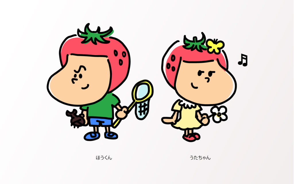 『いちごの里』として知られる芳田の里のキャラクターとして、ほうくん・うたちゃんを制作しました。