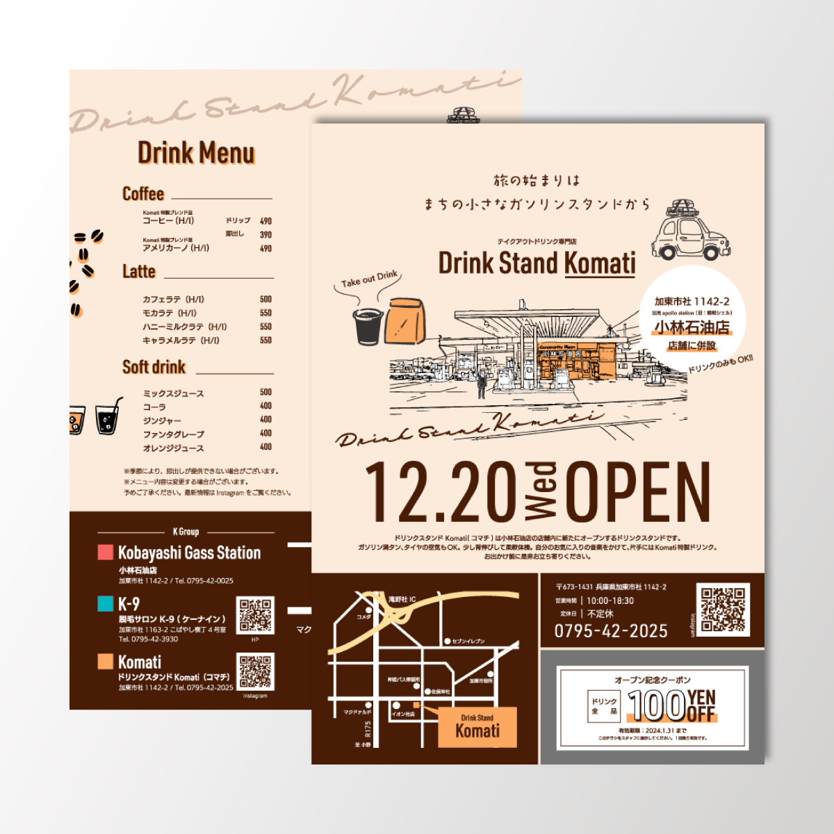 丸みのある可愛らしいイラストを添えることで、チラシを手に取った方が気軽に立ち寄れるような、親しみやすい雰囲気を演出しました。