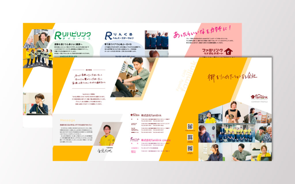業務中の朗らかな写真を多く掲載し、パンフレットを手に取った方がご利用時の雰囲気を具体的にイメージできるようにしました。