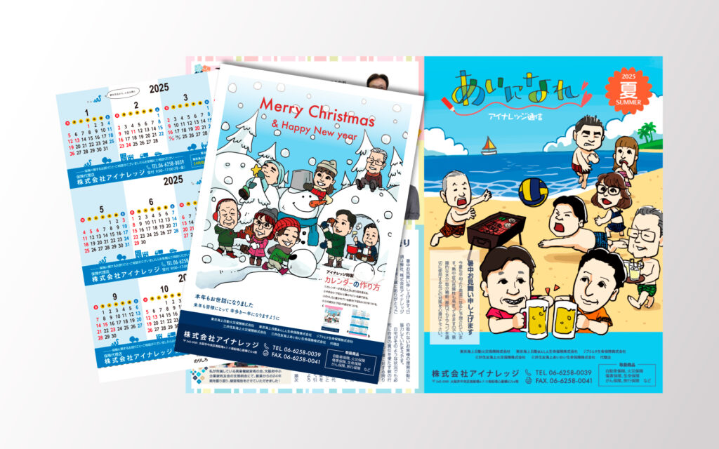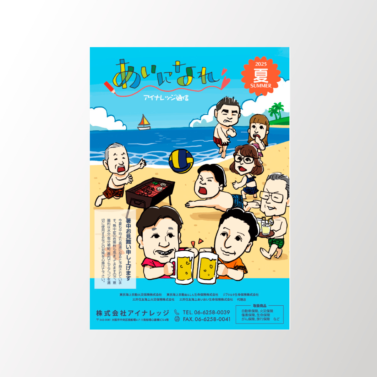 全体を賑やかで明るいカラーでまとめつつ、「保険代理店としての誇り」と信頼感を感じられる内容に仕上げています。